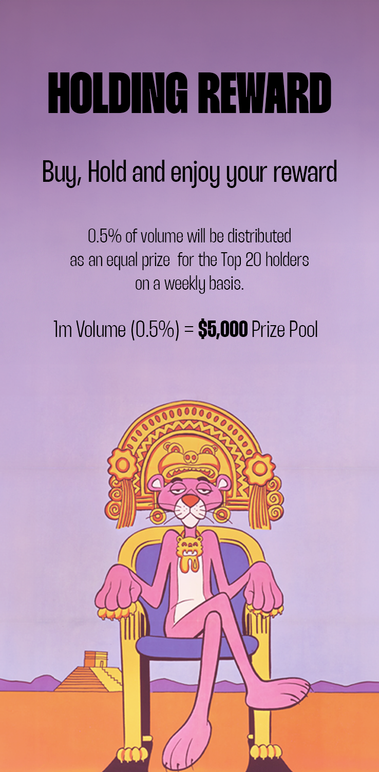 $PINK is not your regular memecoin. It comes with a great reward system based on volume and real-world utility.